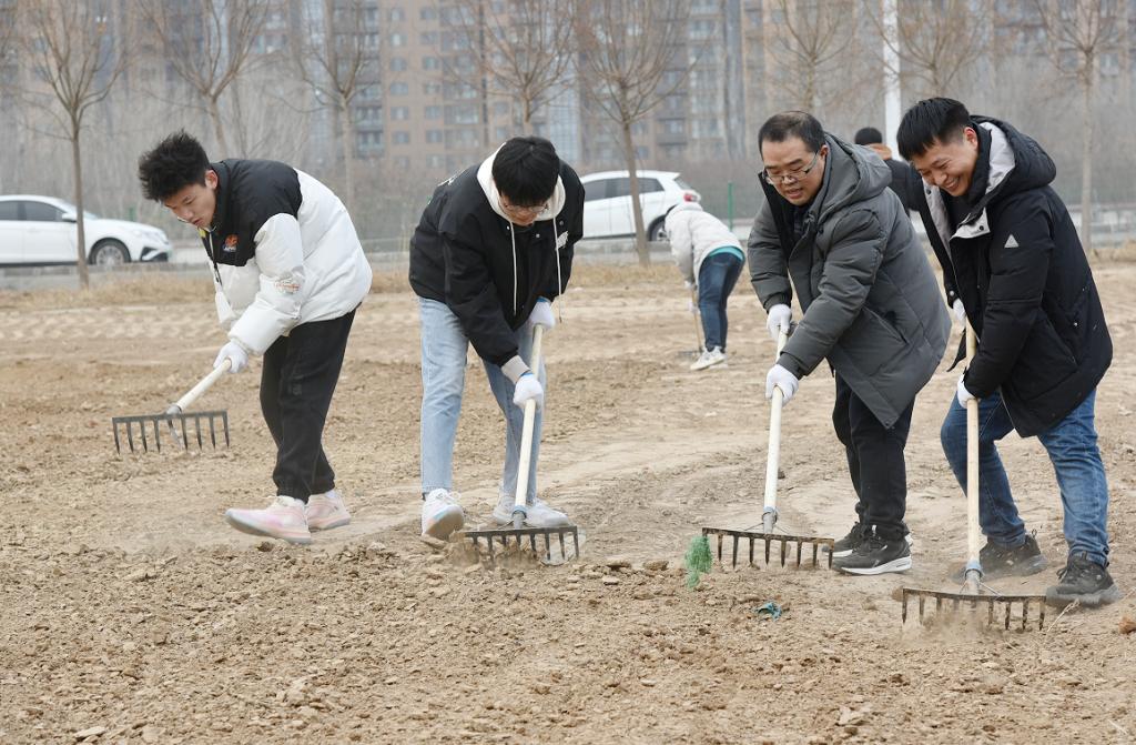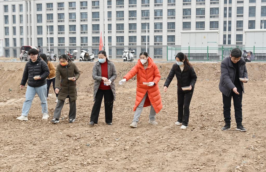 著名小麦育种家茹振钢教授领衔育成的高光效小麦品种百农4199作为绿化种子。活动中,师生们热情高涨、干劲十足,分成三个种植小分队,默契配合,有人手持工具耕地,有人播种,有人搬运,每个环节都衔接有序、有条不紊。通过大半天的辛勤劳动,将绿化种子全部种植完毕。