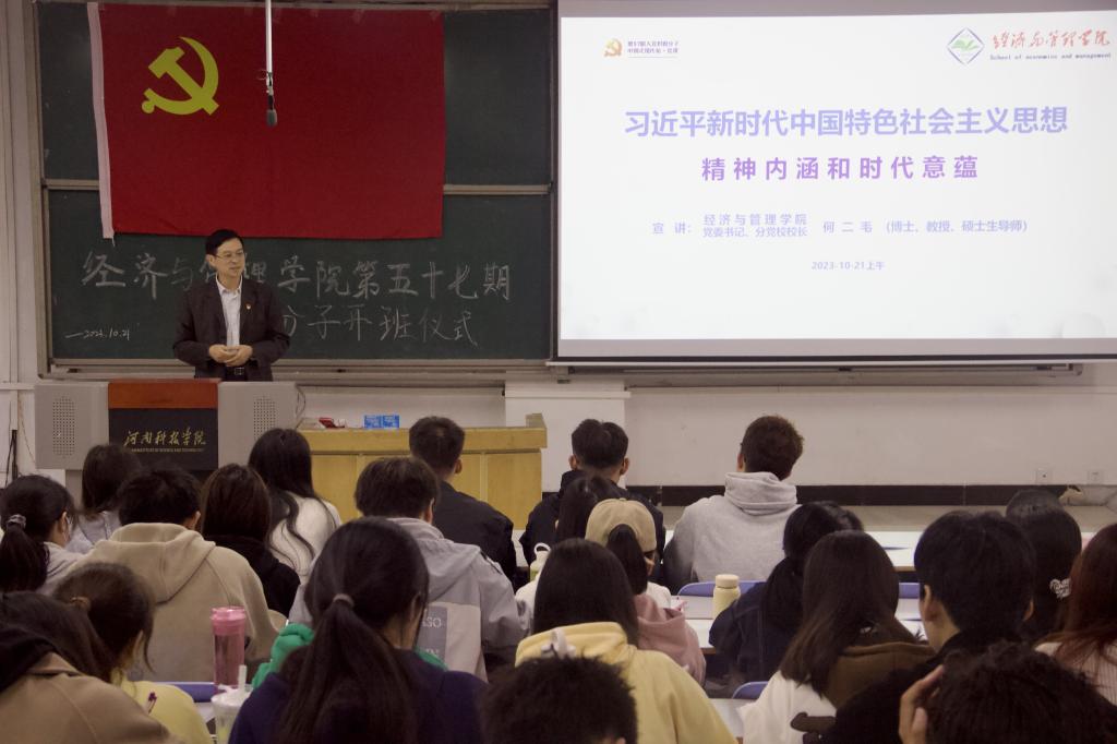 为强化入党积极分子对党的认识、促进党的基本知识入脑入心,10月21日上午,学院党委书记何二毛在十合一教室为学院第五十七期入党积极分子讲党课。
