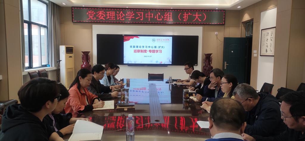 党委理论学习中心组(扩大)学习会在10号楼202会议室召开,学院党委理论中心组成员、各党支部书记、教研室主任参加会议。会议由院党委书记何二毛主持。