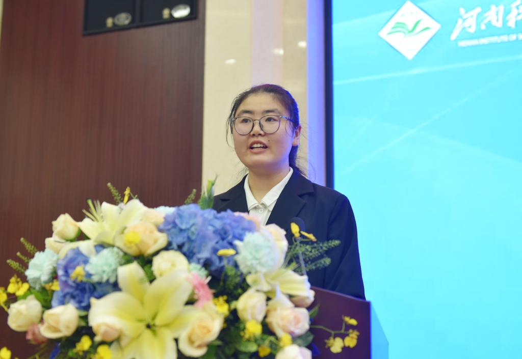 国贸211 班杨依林代表参赛学生发言,表达了以大赛促成长,培养创新创业思维,早日成长为创新创业复合型人才的决心。
