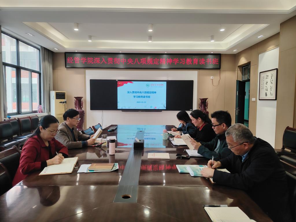 会上,传达了学校深入贯彻中央八项规定精神学习教育精神和要求,宣读了经管学院《学习教育工作方案》,对学习教育的目标任务、工作安排、读书班日程等方面进行了安排。