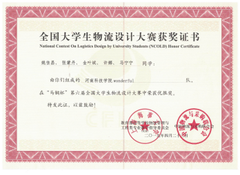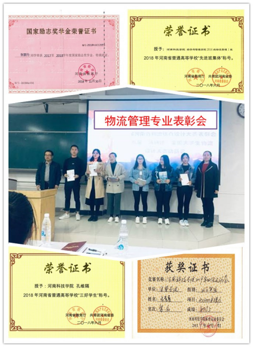 3.2017-2018年,河南省大学生物流仿真设计大赛中荣获一等奖1项,二等奖2项、三等奖1项及优秀组织奖。
