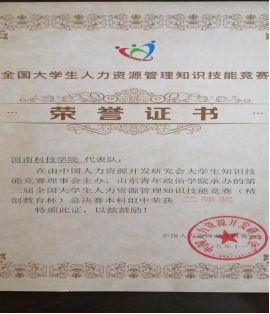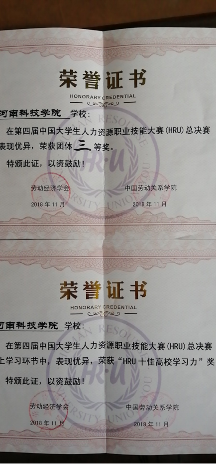 2.中国大学生人力资源职业技能大赛(HRU)一二三等奖若干。