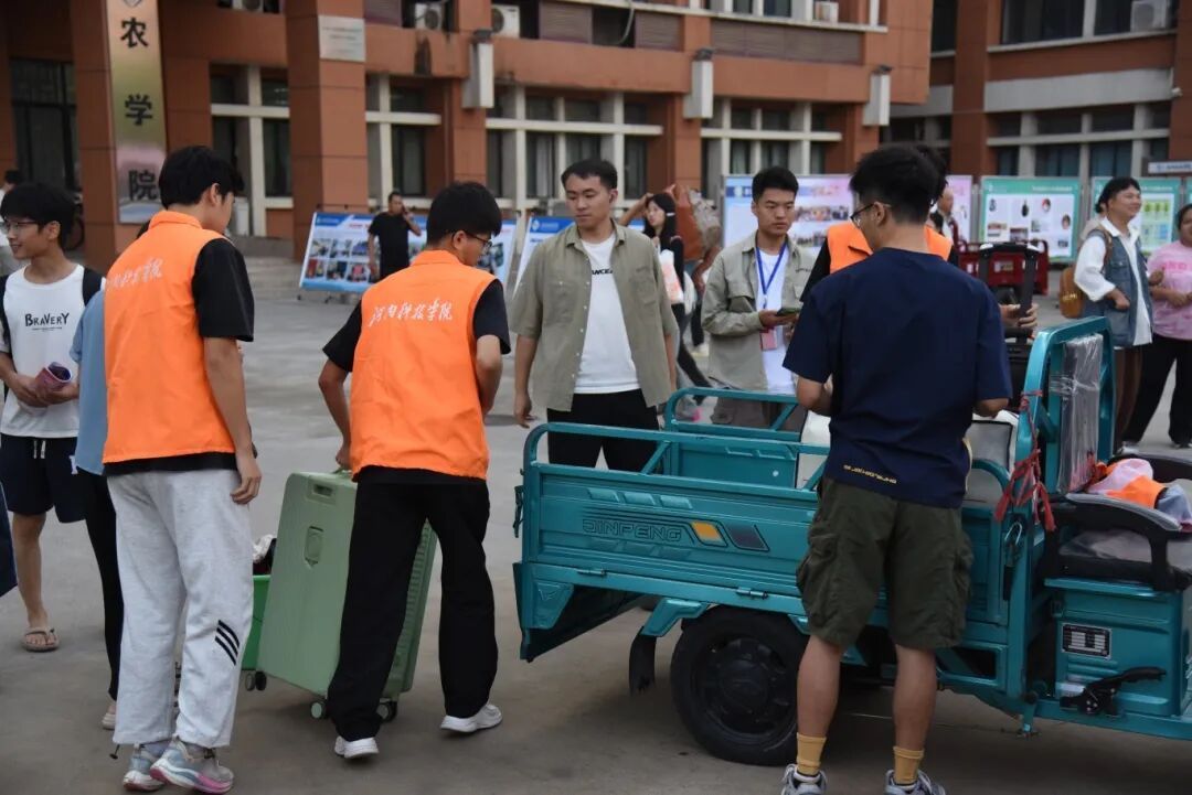 由学生党员、学生骨干组成的迎新志愿者们,在校门口、报到台、宿舍楼来往穿梭,以饱满热情全力投入服务一线。为每一位新生的入学之路暖心护航:位置引导,答疑解惑、搬运行李,每一个瞬间都传递着无微不至的关怀,每一份付出都传递着真挚的欢迎。