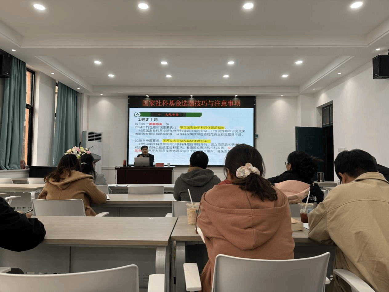 讲座开始前,崔鸽代表学院对何泽军教授的到来表示热烈欢迎,希望通过本次专题指导,进一步提升教师选题立意与论证能力,推动学院科研水平再上新台阶。何泽军教授以选题技巧与申报规范为重点,结合多年项目申报与评审经验,系统讲解了国家社科基金选题的底层逻辑与实操方法。他从政策导向与学术前沿、问题意识与创新价值提炼、研究基础与团队配置等三个维度,通过案例拆解,阐释了如何精准定位选题方向、搭建严密论证框架。针对申报书中常见的选题依据模糊、文献综述浅表化、研究内容空泛等问题,提出"聚焦小切口、深挖真问题、突出差异化"的优化路径。在随后的论证互动环节,何泽军教授逐一进行深度点评,重点围绕选题依据的充分性、文献综述的批判性、研究框架的逻辑性等关键模块提出修改建议。参会教师认真记录专家建议,并围绕申报书细节与何教授展开热烈交流。教师们纷纷表示,将根据指导意见进一步打磨选题、完善论证,切实提升申报书质量。